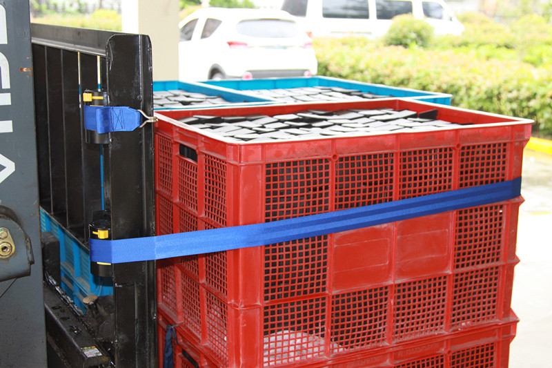 ● The binding strap is installed on the right side of the forklift guard rail frame (the right-hand side of the forklift driver).