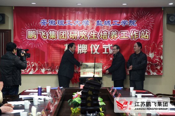 12月10日,由鵬飛集團聯(lián)合安徽理工大學、鹽城工學院創(chuàng)建的研究生培養(yǎng)工作站在江蘇鵬飛集團公司舉行揭牌儀式,江蘇鵬飛集團副總經(jīng)理周延標介紹了與安徽理工大學、鹽城工學校產(chǎn)學研合作情況,鹽城工學院邵榮副校長、安徽理工大學王其東副校長對研究生培養(yǎng)工作站的成立提出新的工作要求,大公鎮(zhèn)政府、海安縣科技局領導做了重要講話,鹽城工學院邵榮副校長、王其東副校長、鵬飛集團副總經(jīng)理周延標在三方合作協(xié)議上簽字,三方共同為鵬飛集團研究生工作站揭牌,會議結束后,大家參觀了江蘇鵬飛節(jié)能環(huán)保產(chǎn)業(yè)技術研究院和鵬飛集團全面建成投產(chǎn)后的北廠新區(qū)。