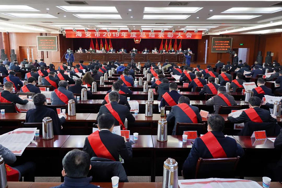 3月14日上午,海安市召開2019年度總結(jié)表彰大會(huì),表彰全市各條戰(zhàn)線涌現(xiàn)的先進(jìn)單位和個(gè)人,由于受新型冠狀肺炎疫情的影響,會(huì)議實(shí)施一人一桌簡(jiǎn)便召開。會(huì)議設(shè)主會(huì)場(chǎng)和分會(huì)場(chǎng),由海安融媒體中心進(jìn)行現(xiàn)場(chǎng)直播。市四套班子全體負(fù)責(zé)人,各區(qū)鎮(zhèn)、各部門主要負(fù)責(zé)人、受表彰對(duì)象代表出席會(huì)議。會(huì)議由于立忠市長(zhǎng)主持,宣讀表彰決定,獲獎(jiǎng)單位分別上臺(tái)領(lǐng)獎(jiǎng),顧國(guó)標(biāo)書記做了重要講話。鵬飛集團(tuán)榮獲海安市委、市政府授予的杰出貢獻(xiàn)獎(jiǎng)、工業(yè)百?gòu)?qiáng)企業(yè)、開放型經(jīng)濟(jì)先進(jìn)企業(yè)、海安市市長(zhǎng)質(zhì)量獎(jiǎng)、王家安董事長(zhǎng)當(dāng)選六星級(jí)企業(yè)家。