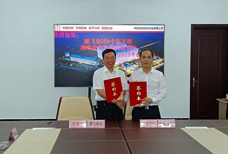 座談交流結(jié)束后,中新開維與鵬飛集團(tuán)共同簽訂了戰(zhàn)略合作協(xié)議,雙方將建立常態(tài)化交流聯(lián)系機(jī)制,加強(qiáng)全方位的合作,共謀高質(zhì)量發(fā)展新格局。衷心希望雙方以此次簽約為起點(diǎn),同心同向、攜手共進(jìn),把合作具體工作細(xì)化量化,推動(dòng)水泥工業(yè)用回轉(zhuǎn)窯早日在食品生產(chǎn)領(lǐng)域創(chuàng)新應(yīng)用,打造食品行業(yè)規(guī)?;椭悄芑氖痉稑?biāo)桿,實(shí)現(xiàn)合作共贏,共創(chuàng)美好未來(lái)。