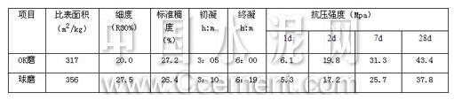 表中數(shù)據(jù)說明:在凝結(jié)時(shí)間、標(biāo)準(zhǔn)稠度需水量基本相同的前提下,OK磨磨制的水泥28d抗壓強(qiáng)度比球磨水泥高出15%,同時(shí),水泥的早期強(qiáng)度也高,可進(jìn)一步增加混合材摻量,降低水泥生產(chǎn)成本。