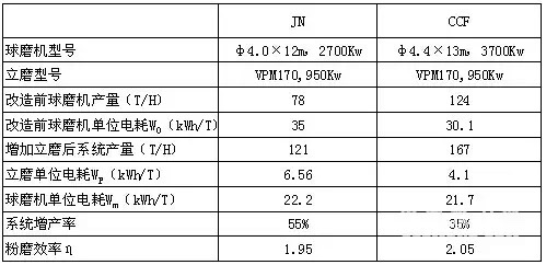 此工藝運用于VPM立磨功率與球磨機功率比值大于0.5的場合,該系統(tǒng)主要優(yōu)點是系統(tǒng)產(chǎn)量高(增產(chǎn)100%以上),單位電耗低。