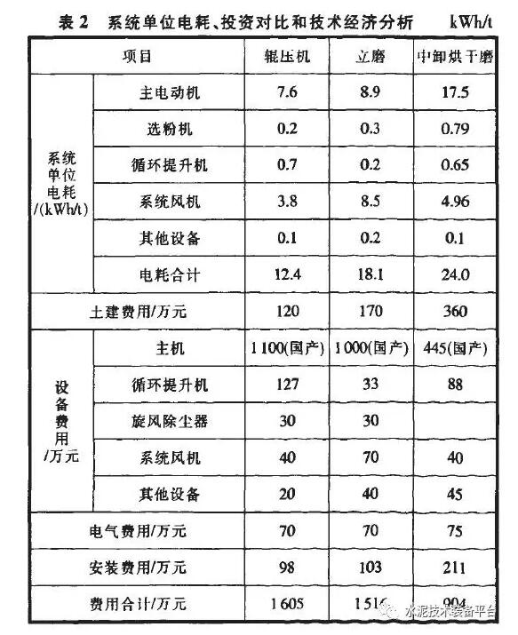 鵬飛就中卸烘干磨、立磨和輥壓機生料終粉磨方案比較