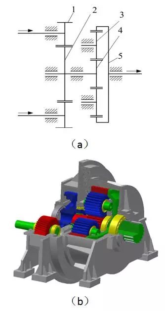 (2) 多點嚙合齒輪箱采用平行軸功率分流傳動方式,結(jié)構(gòu)簡單,加工方便;