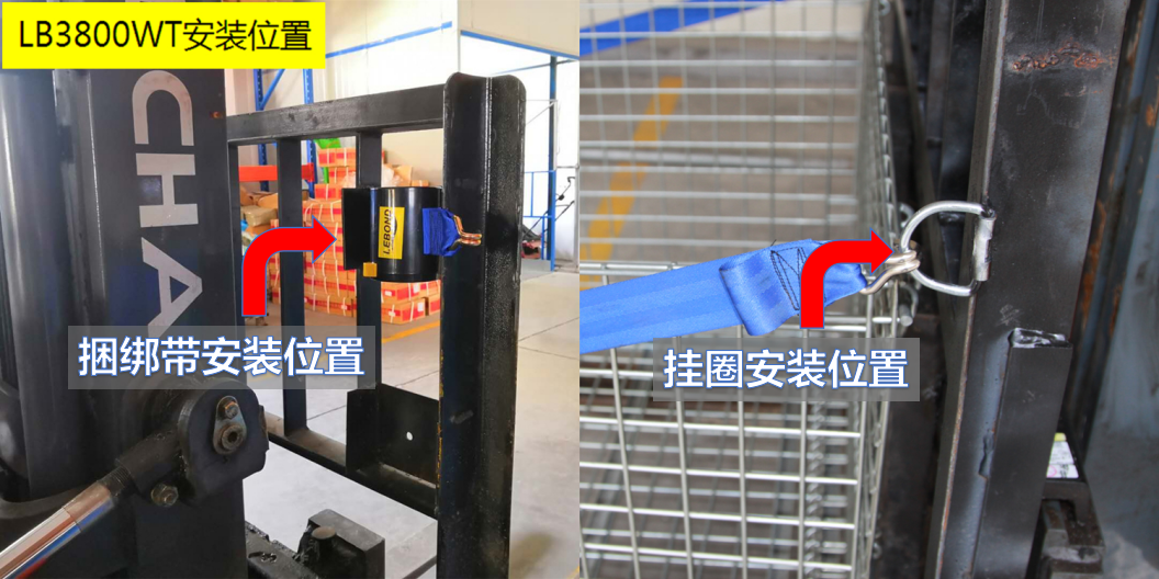 ●捆綁帶安裝在叉車護欄架右側(cè)(叉車駕馳員右手側(cè))。