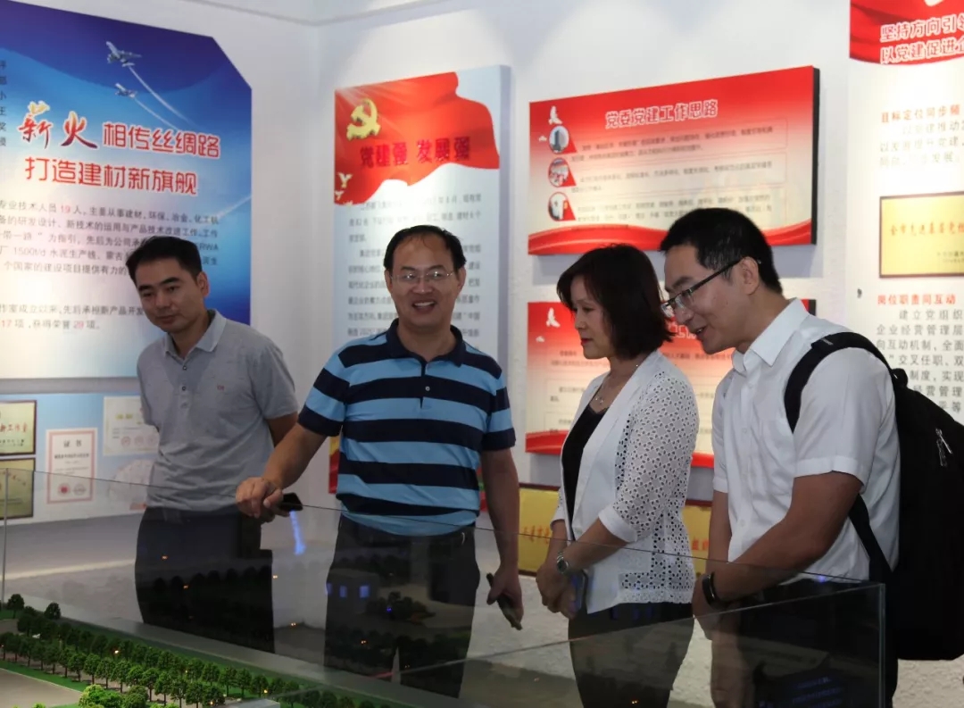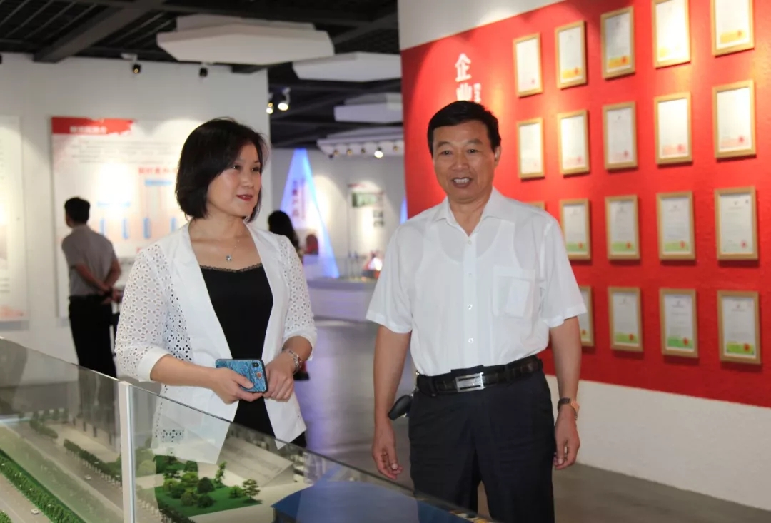 董事長(zhǎng)王家安陪同全國(guó)建材裝備標(biāo)準(zhǔn)化技術(shù)委員會(huì)秘書(shū)長(zhǎng)王玉敏參觀鵬飛集團(tuán)展示廳