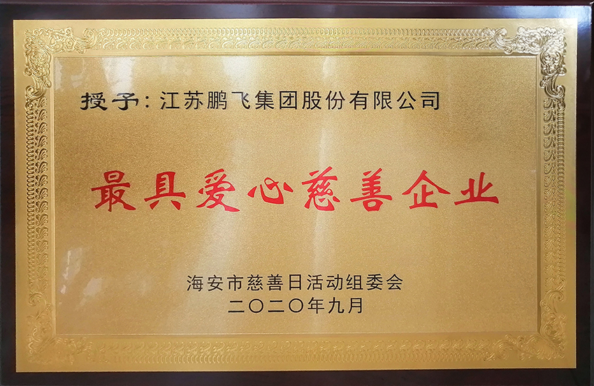近日,海安市慈善基金會(huì)表彰了慈善工作先進(jìn)集體和先進(jìn)個(gè)人,基于在履行社會(huì)公益責(zé)任方面的突出表現(xiàn)和良好反響,江蘇鵬飛集團(tuán)被慈善基金會(huì)授予“最具愛心慈善企業(yè)”稱號(hào)。