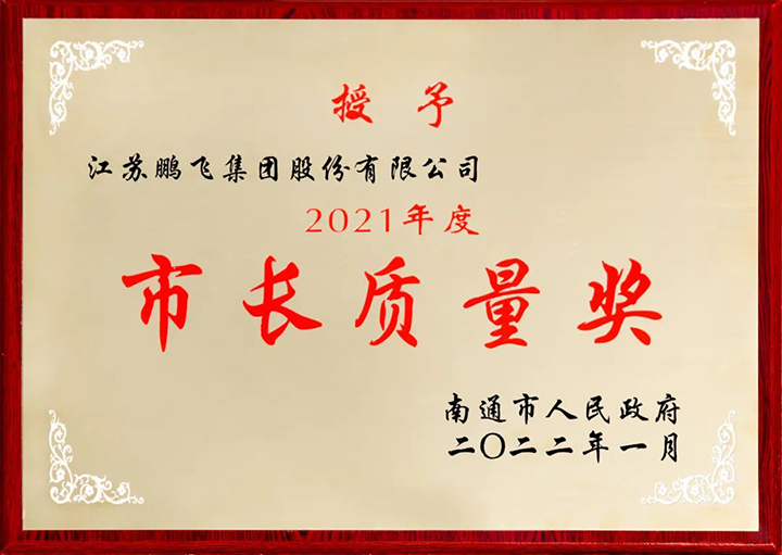 江蘇鵬飛集團(tuán)股份有限公司榮獲2021年度南通市市長(zhǎng)質(zhì)量獎(jiǎng)