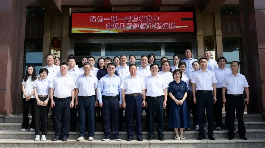 江蘇省進(jìn)出口商會(huì)會(huì)長(zhǎng)笪家祥一行來(lái)鵬飛調(diào)研考察,了解了鵬飛的發(fā)展歷程、工業(yè)技術(shù)、創(chuàng)新成果及未來(lái)規(guī)劃