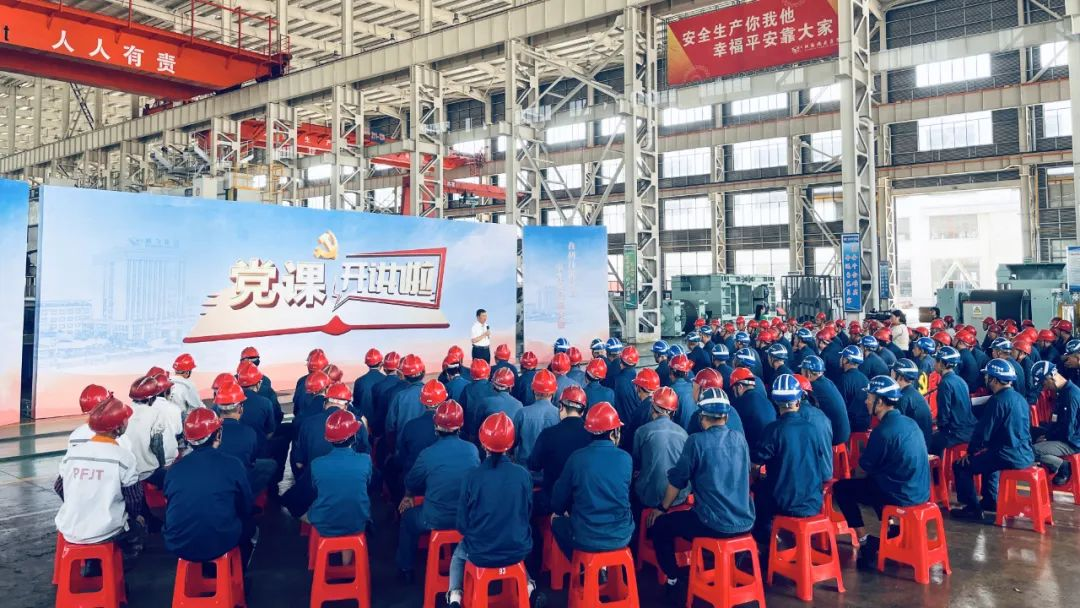 鵬飛集團(tuán)董事長(zhǎng)王家安、副總經(jīng)理施鵬宇在生產(chǎn)一線為職工上黨課,鼓勵(lì)員工不斷加強(qiáng)學(xué)習(xí)、提高素質(zhì)、強(qiáng)化安全意識(shí)、勇于擔(dān)當(dāng)作為、注重團(tuán)隊(duì)協(xié)作