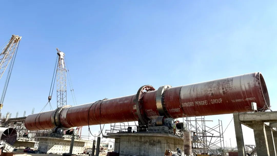 鵬飛集團(tuán)生產(chǎn)的Φ4.5x68m回轉(zhuǎn)窯在埃及皇家水泥氧化鋅項(xiàng)目安裝現(xiàn)場(chǎng)