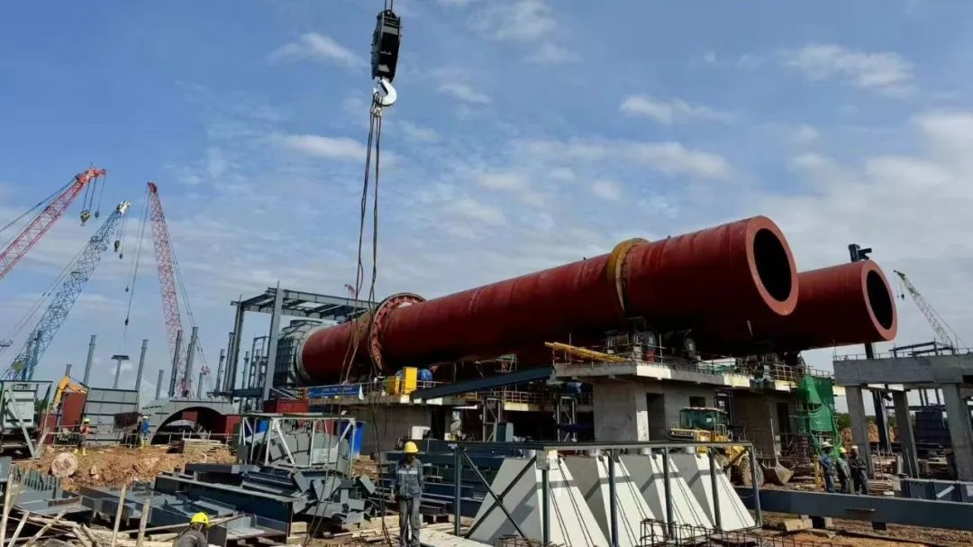 鵬飛集團(tuán)生產(chǎn)的Φ4.8x100m、Φ4.6x100m(140臺(tái)套)回轉(zhuǎn)窯,在青山控股(印尼紅土鎳礦項(xiàng)目)安裝現(xiàn)場(chǎng)
