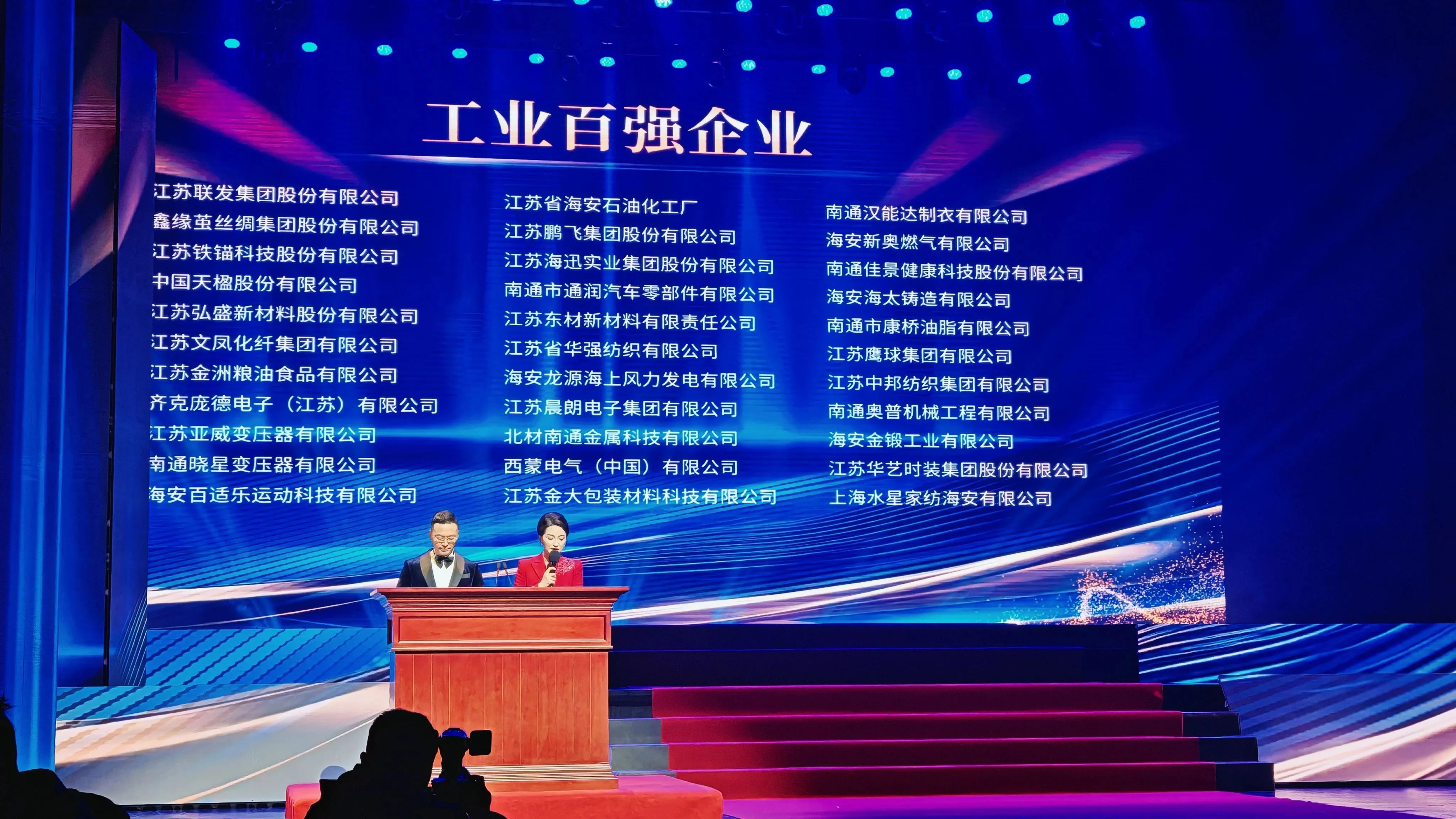 2025年2月4日,海安市經(jīng)濟(jì)高質(zhì)量發(fā)展大會(huì)暨2024年度影響力企業(yè)家頒獎(jiǎng)儀式舉行。市四套班子全體負(fù)責(zé)人,各區(qū)鎮(zhèn)、市級(jí)機(jī)關(guān)各部門(mén)主要負(fù)責(zé)人,十大專業(yè)園區(qū)辦公室、產(chǎn)業(yè)鏈培育辦公室負(fù)責(zé)人,市屬國(guó)企以及供電、燃?xì)?、通信、金融、在海高校、各產(chǎn)業(yè)研究院主要負(fù)責(zé)人,全市約800家企業(yè)主要負(fù)責(zé)人參加活動(dòng)。會(huì)議通報(bào)了農(nóng)業(yè)高質(zhì)量發(fā)展十強(qiáng)企業(yè)、開(kāi)放型經(jīng)濟(jì)先進(jìn)企業(yè)、稅收貢獻(xiàn)超億元企業(yè)、稅收貢獻(xiàn)超5000萬(wàn)元企業(yè)、工業(yè)百?gòu)?qiáng)企業(yè)、現(xiàn)代服務(wù)業(yè)十強(qiáng)企業(yè)、星級(jí)企業(yè)家、建筑業(yè)十強(qiáng)企業(yè)、服務(wù)地方經(jīng)濟(jì)發(fā)展優(yōu)勝金融單位名單,發(fā)布了2024年度海安影響力企業(yè)家名單。