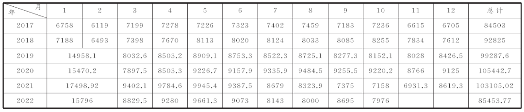 表2 2017~2022年粗鋼產(chǎn)量統(tǒng)計表(單位:萬噸)